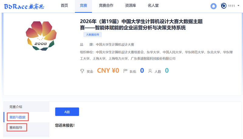 参赛队伍在数睿思平台“2026年(第19届)中国大学生计算机设计大赛”专栏注册报名后,才能查看和下载数据获取路径及学习资料等资源。